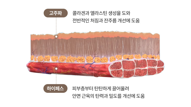 진피층과 근육층을 동시에 타겟해 자연스럽고 균형 잡힌 리프팅 효과를 극대화합니다.