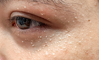 편평하고 좁쌀만 한 작은 모양으로 좁쌀여드름·비립종과 혼동되기 쉽습니다.