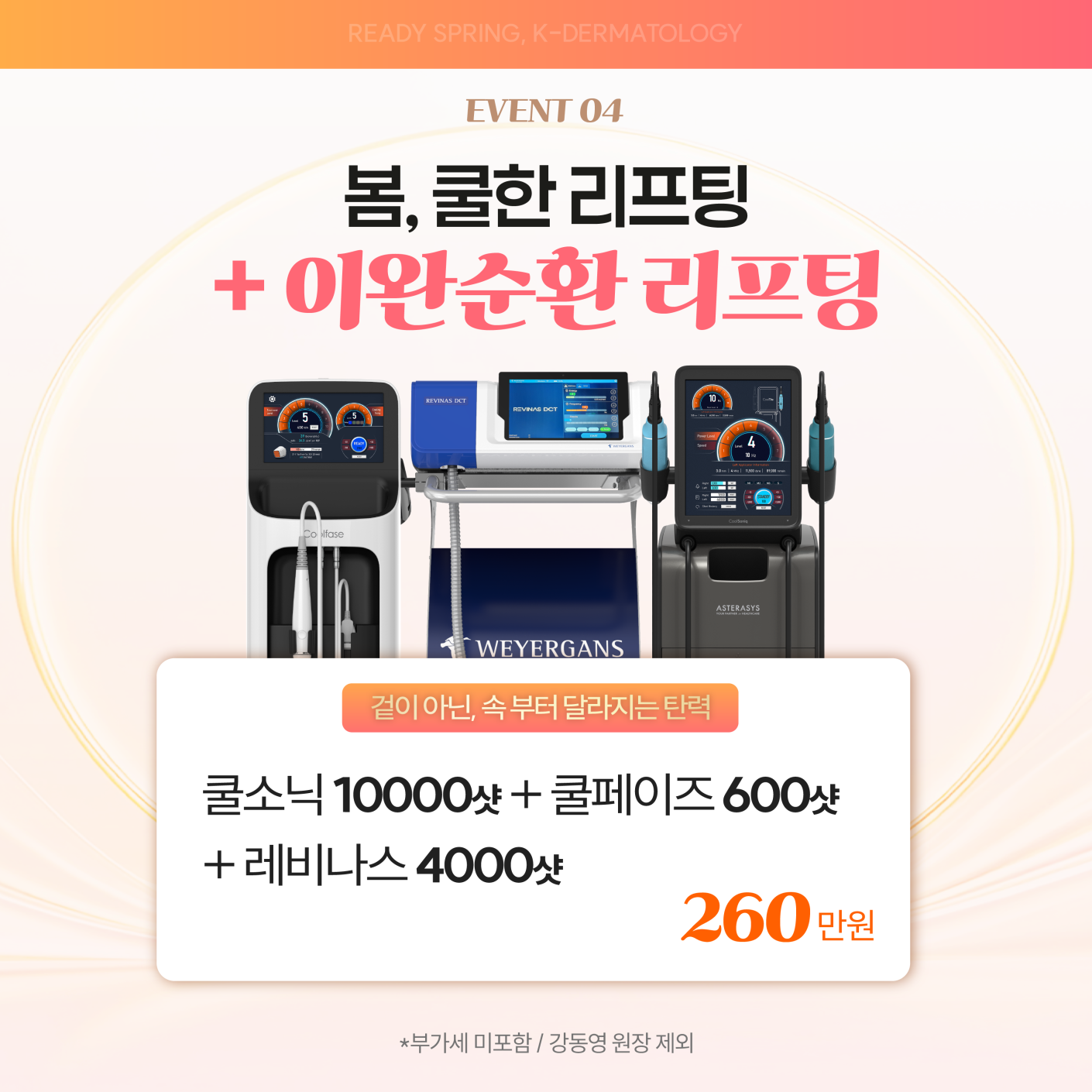 Event 케이피부과 이벤트 봄,쿨한 리프팅 +이완순환 리프팅 2026-03-04 ~ 2026-04-30 이벤트 신청하기 이벤트 신청하기 이전글여드름 흉터 업그레이드 프로그램 26.03.04 다음글환절기 홍조 이벤트 26.03.04