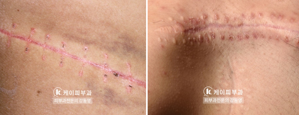 (왼쪽 상태일 때 흉터레이저치료를 시행하면 훨씬 효과가 뛰어납니다.)
