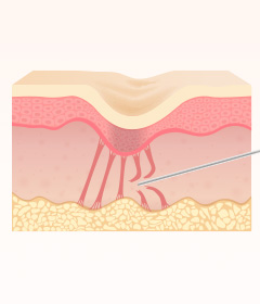여드름 흉터는 단순히 패인 자국을 메우는 것이 아니라, 흉터 하부의 유착된 섬유 조직을 풀어내고 피부 속 재생을 유도해야 합니다.