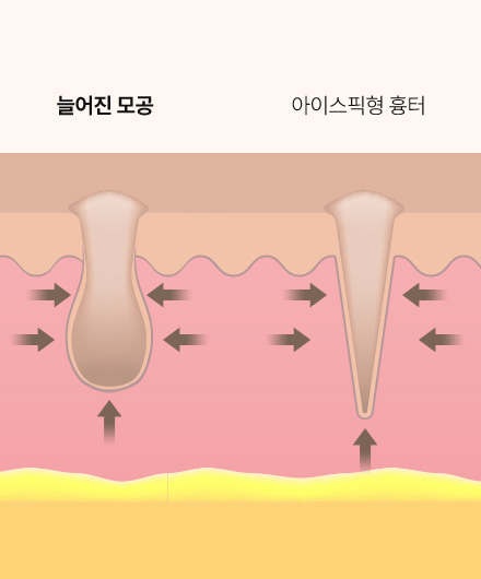 깊고 좁은 모공은 아이스픽 흉터처럼