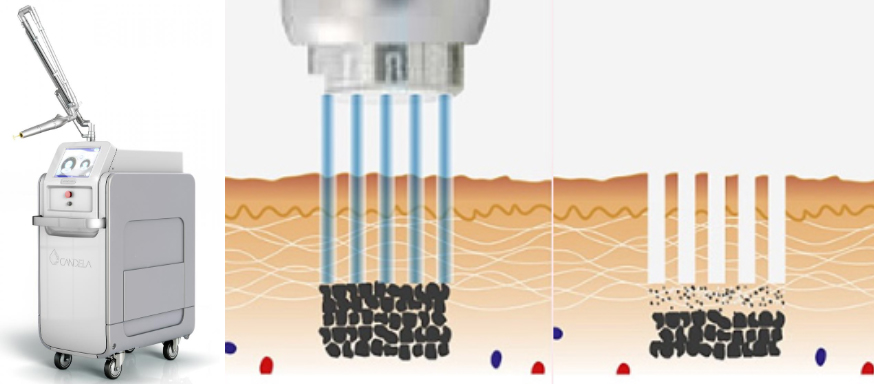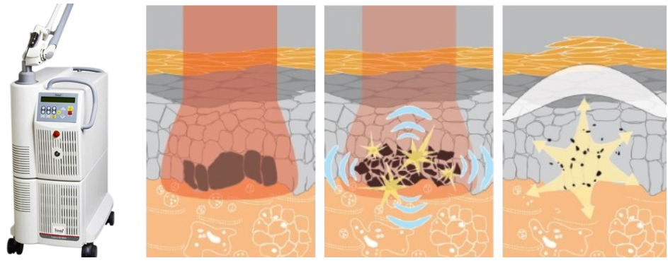 - 순간적인 에너지로 색소를 잘게 부수어 피부 속으로 흡수시켜 제거하는 것