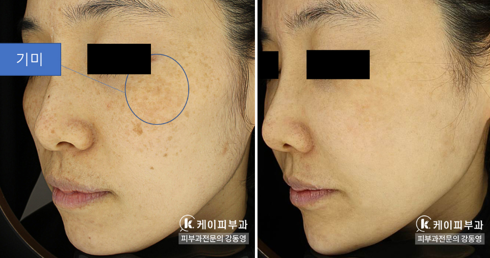 맞춤치료 시행 후 90%이상 기미잡티가 개선된